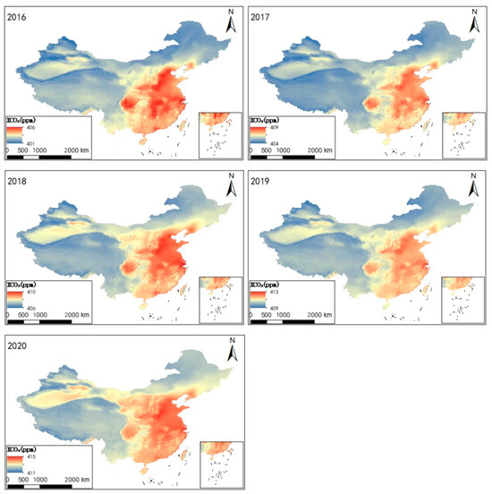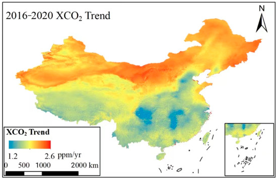 3.3. Spatiotemporal Variations in XCO2 in China