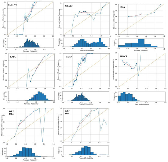 - Hsu, W.; Murphy, A.H. The Attributes Diagram A Geometrical Framework for Assessing the Quality of Probability Forecasts. Int. J. Forecast. 1986, 2, 285–293. [Google Scholar] [CrossRef]
