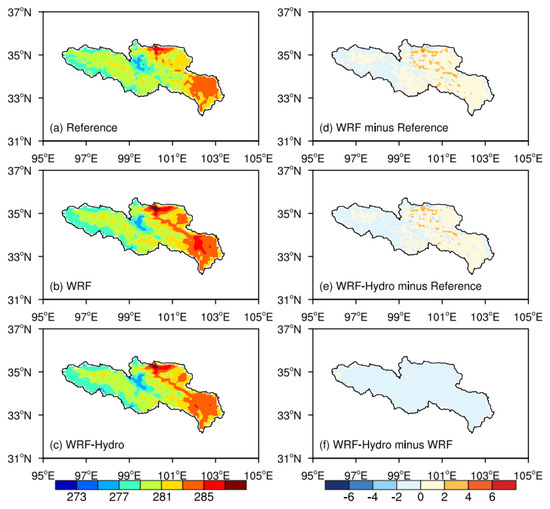 - Li, G.W.; Meng, X.H.; Blyth, E.; Chen, H.; Shu, L.L.; Li, Z.G.; Zhao, L.; Ma, Y.S. Impact of Fully Coupled Hydrology-Atmosphere Processes on Atmosphere Conditions: Investigating the Performance of the WRF-Hydro Model in the Three River Source Region on the Tibetan Plateau, China. Water 2021, 13, 3409. [Google Scholar] [CrossRef]
