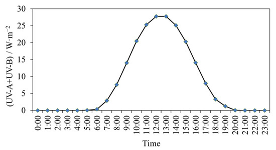 Daytime and nighttime are generally defined based on the characteristic variations in solar radiation. Numerous studies have utilized methods such as machine learning and regression models to estimate the features of solar radiation in China and globally [37,38,39,40,41,42,43], with solar radiation characteristics potentially varying across different regions. Consequently, the ultraviolet radiation characteristics in Dongying were analyzed. Negligible ultraviolet radiation levels were observed from 0:00 to 6:00 and from 20:00 to 23:00 (Figure 2). Therefore, the period from 20:00 to 6:00 of the next day is considered to be the nighttime of Dongying [14,35].