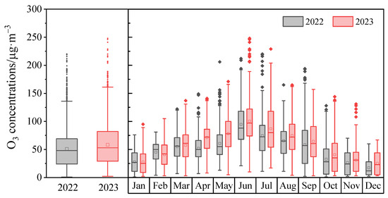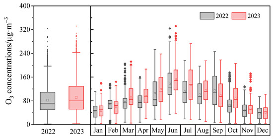 Inter-annual and inter-monthly changes in daytime ozone concentrations in Dongying from 2022 to 2023.