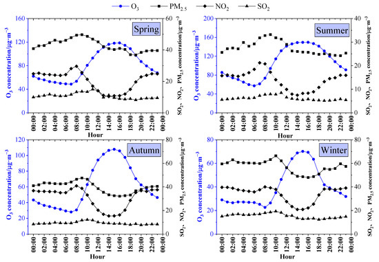 3.3.1. Diurnal Variations in Ozone and Other Air Pollutants during Different Seasons