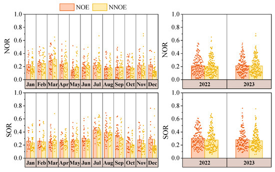 Differences in nocturnal NOR and SOR during the NOE events and NNOE events in Dongying from 2022 to 2023.