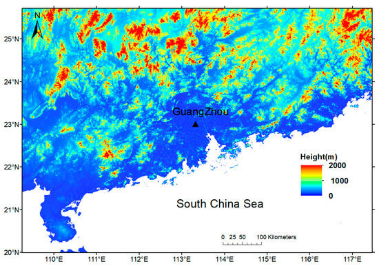 Experimental location of the Guangzhou Weather Observatory (GZWO; 113°19′12″ E, 23°0′36″ N, 42 m above sea level).