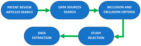 The flowchart of the carried-out stages in this section is shown in Figure 3. During the first stage, the identification of patents was carried out, and the search results from the search engines were consolidated after removing duplicated documents.