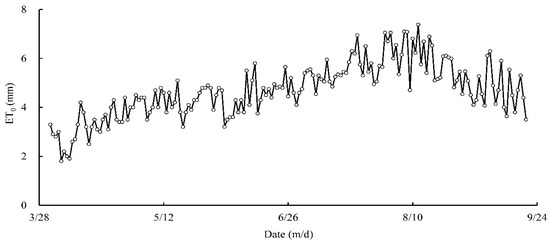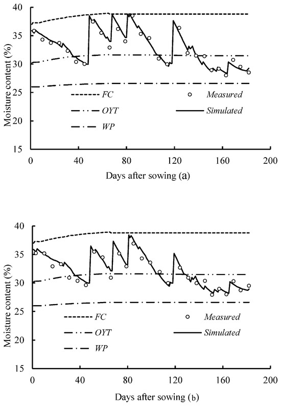 | Treatment 4 | The irrigation date was determined based on the soil moisture content. Irrigation occurred when the soil moisture content in the root layer reached a minimum threshold of 80%. The irrigation water required to reach field capacity was the necessary total irrigation. |
