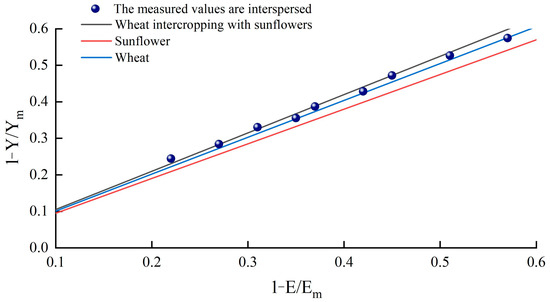 | 1−E/Em (m/d) | Wheat Intercropping with Sunflowers | Wheat | Sunflowers | Measured Value |