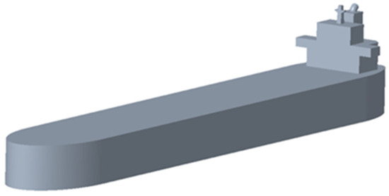According to the selected ship type and ship size, a three-dimensional model of the merchant ship is established, as shown in Figure 3. However, considering comprehensive factors such as simulation calculation quantity and mesh quality, the detailed features of the ship are simplified and only the part of the ship exposed to the air is considered. The simplified model is shown in Figure 4.