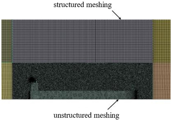 In determining the model, although the hull shape has been partially simplified, there are still certain areas that are excessively large or relatively small in size. Therefore, it is necessary to adopt a segmented mesh division mode for the overall calculation domain, as shown in Figure 6.