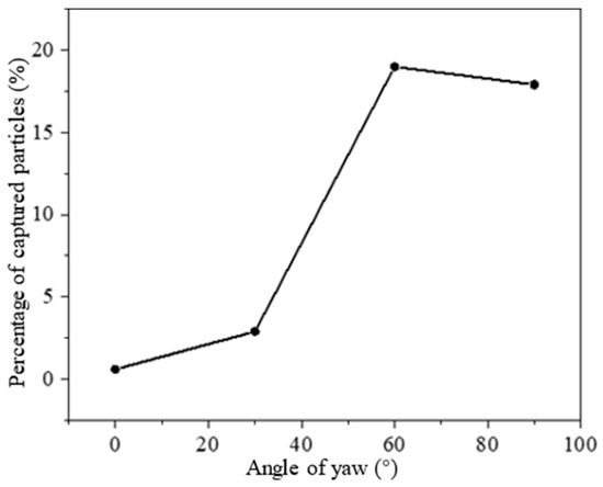 Particle capture rate at each yaw angle.