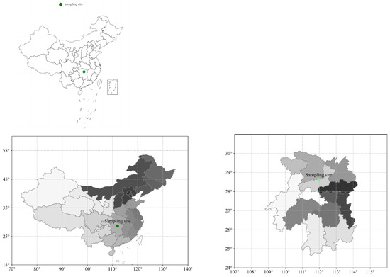 Map showing the monitoring site at Taojiang County, Hunan Province, China.