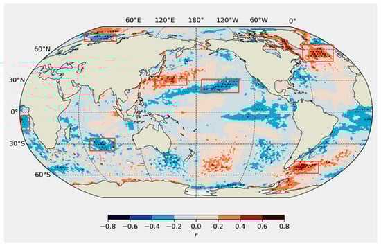 The spatial correlation patterns observed during the MAM rainy seasons with global SSTs range between −0.8 and 0.8, as shown in Figure 10. This indicates a varying degree of influence that different ocean basins exert on rainfall over Rwanda during this specific period, as previously reported [65,66]. Notably, the Indian Ocean exhibits a lesser impact on MAM season rainfall in Rwanda.