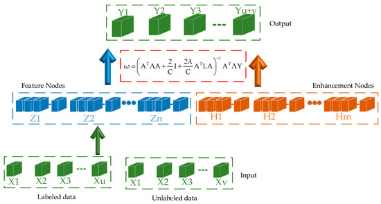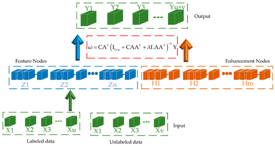 A semi-supervised BLS was introduced because the BLS algorithm did not achieve the expected prediction due to the large amount of missing valuable information contained in the dataset and the lack of data labels. The smoothing assumption underlies the semi-supervised algorithm. In [29], the smoothing assumption is imposed on the sample by minimizing Equation (1).