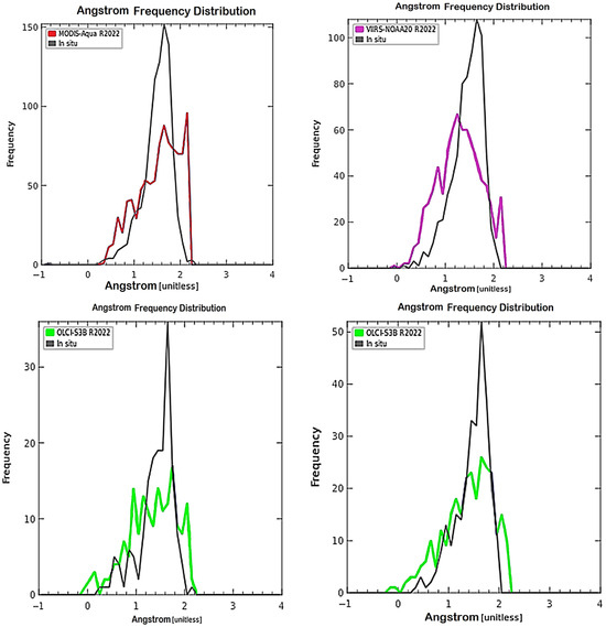 Frequency distribution of satellite and in situ AERONET-OC stations values of the Ångström parameter for the Black Sea region.
