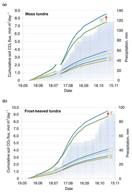 - Makhnykina, A.; Vaganov, E.A.; Panov, A.; Koshurnikova, N.; Prokushkin, A. The pulses of soil CO2 emission in response to rainfall events in Central Siberia: Revisiting the overall frost-free season CO2 flux. Forests 2024, 15, 355. [Google Scholar] [CrossRef]