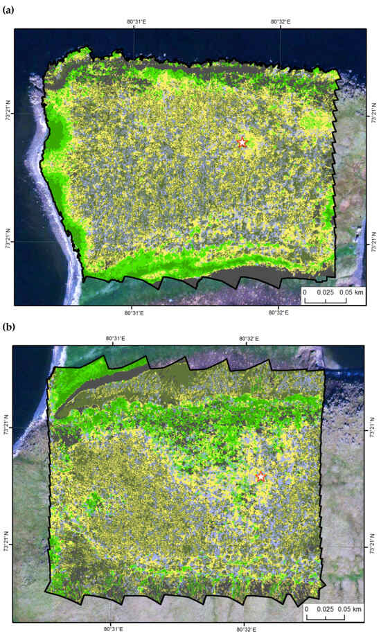- Walker, D.A.; Raynolds, M.K.; Daniëls, F.J.A.; Einarsson, E.; Elvebakk, A.; Gould, W.A.; Katenin, A.E.; Kholod, S.S.; Markon, C.J.; Melnikov, E.S.; et al. The Circumpolar Arctic vegetation map. J. Veg. Sci. 2005, 16, 267–282. [Google Scholar] [CrossRef]