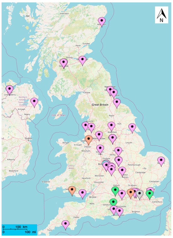 - Department for Environment Food & Rural Affairs National Air Quality Data Archive. UK Air Information Resource. Available online: https://uk-air.defra.gov.uk/data/data_selector_service#mid (accessed on 15 May 2024).
