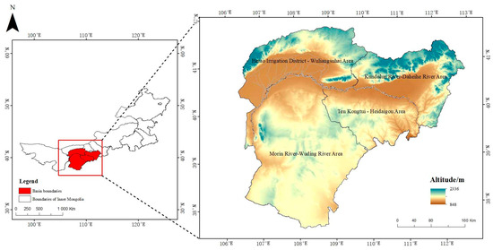 The Inner Mongolia section of the Yellow River Basin is located in the middle and upper reaches of the Yellow River Basin, which flows through seven leagues (Hohhot, Baotou, Wuhai, Ordos, Bayannur, Alashan and Ulanqab)—from Shizuishan to the exit point of Jungar Banner in Ordos City—and has a total length of 830 km and a total area of approximately 152,000 km