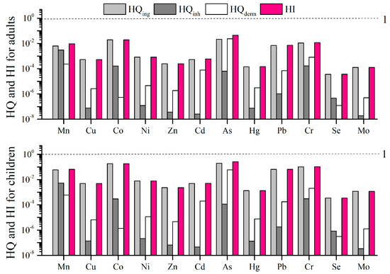 - Zheng, N.; Liu, J.S.; Wang, Q.C.; Liang, Z.Z. Health risk assessment of heavy metal exposure to street dust in the zinc smelting district, Northeast of China. Sci. Total Environ. 2010, 408, 726–733. [Google Scholar] [CrossRef] [PubMed]