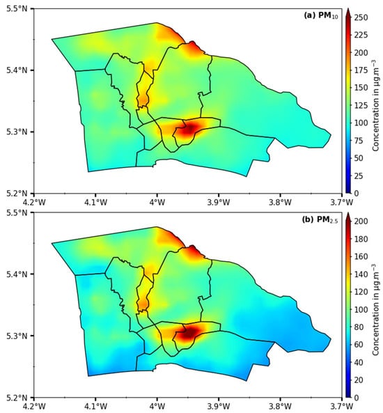 2.3.4. Modeled PM10 and PM2.5 Concentrations