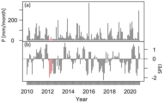 As in Figure 4 (a) the observed precipitation but referring to (b) the SPEI [dimensionless; base period January 2010–December 2020].