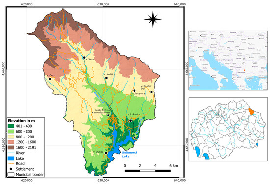 By socio-economic overview, the municipality comprises nine settlements, eight of which are rural: Todorovci, Lukovica, Kostin Dol, Kosevica, Moštica, Dulica, Sasa, and Cera, with the town of Makedonska Kamenica as the municipal center. According to the last census in 2021 [77], the Municipality of Makedonska Kamenica has a population of 6439, which is significantly less than the census of 2002 (8110 inhabitants), with the highest decrease in the agricultural population. Thus, the municipality has a predominantly rural settlement pattern with an underdeveloped road network, limiting accessibility and economic development. Also, it lies on an important road connecting the eastern and central parts of the republic. Even though the local roads are not great, this main road helps connect the region. All these aspects are important, and the hazard vulnerability assessment focuses on analyzing the causal interaction between natural and anthropogenic systems within the landscape.