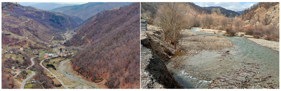 The Kamenica River valley in the village of Sasa (left) and the Kamenica River (right) located within the MKM.
