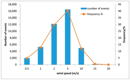 The wind at the comparison site at 10 m height [14], and during the comparison period, flowed mainly to the southeast direction, with wind speeds values indicated in Figure 1b: