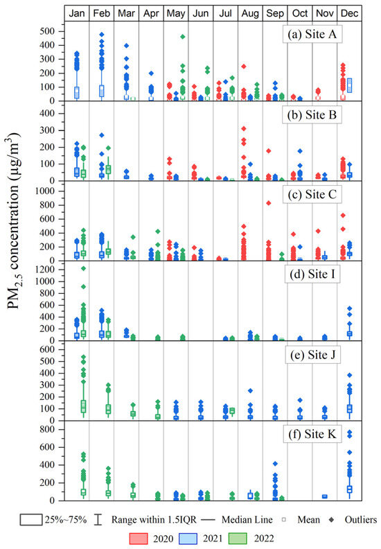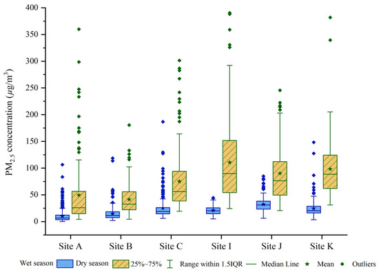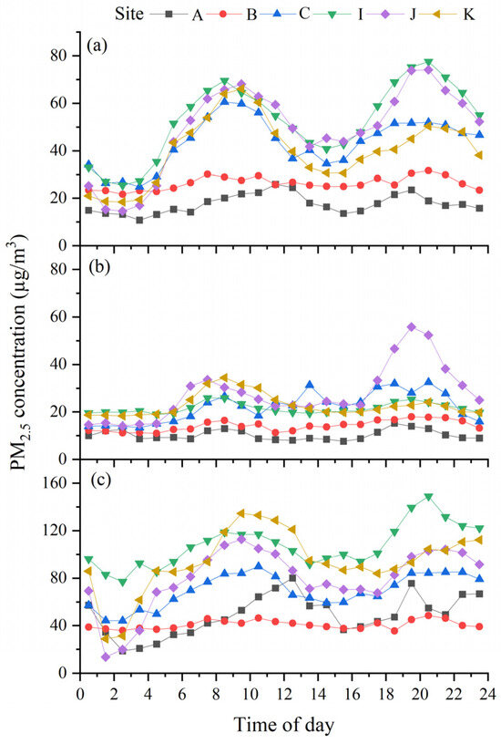 3.3. Site-To-Site and Diurnal Variations in PM2.5 Concentration