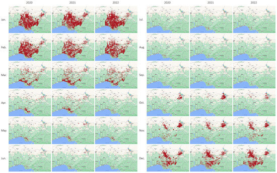 3.2. Seasonal Variation in Air Mass Trajectory and Fire Spots