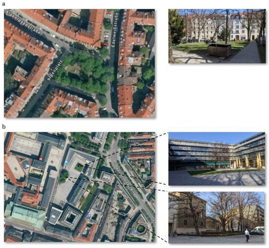 Selected squares: Alpenplatz (a); Marstallplatz (b). Source: Priscila W. Stark da Silva (with basic geographical data provided by BayernAtlas).