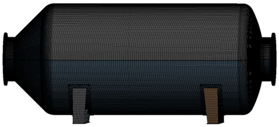 People pay great attention to the above-mentioned pollutants and the treatment methods of pollutants, which makes the emission control technology of marine diesel engines face more severe challenges. The selective catalytic reduction (SCR) system is crucial for the post-combustion nitrogen oxide (NOx) emission control of fixed and mobile sources [5]. During operation, the system is subjected to mechanical loads caused by gravity and internal pressure, thermal loads caused by high temperature and corrosive gas corrosion. In addition, uncertain loads, such as vibration loads from diesel engines, wind and waves, cannot be ignored [6]. Therefore, the design, manufacture and installation process of the marine diesel engine high-pressure SCR system must fully consider the strength conditions; if the system is damaged during the working process, the exhaust gas leakage will directly pollute the environment and threaten personal safety, resulting in economic losses. Therefore, it is of great significance to conduct strength simulation analysis for the above systems [7,8].