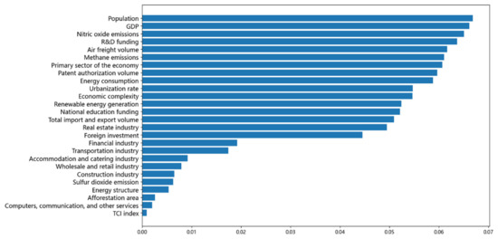 Therefore, machine learning models have recently been implemented in environmental research. By employing machine learning methods, various factors can be filtered to identify the key factors affecting carbon dioxide emissions. In accordance with the random forest model, Liu et al. [] selected 56 factors and analyzed the dynamic transition of these factors. Qin et al. [] applied the random forest model to select influencing factors, including socio-economic and environmental factors, and analyzed the effects of these factors on carbon dioxide emissions.