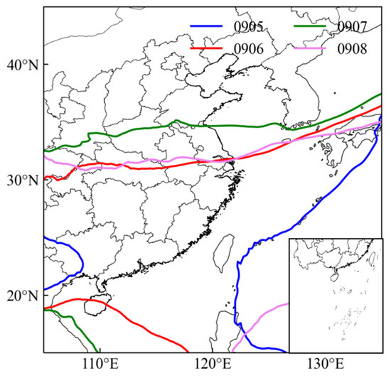 The 500 hPa upper-air meteorological data were obtained from the fifth generation European Center for Medium-Range Weather Forecasts (ECMWF) atmospheric reanalysis of the global climate (ERA-5) with a temporal resolution of 1 h and a spatial resolution of 0.25° × 0.25° (accessed on 28 September 2022) [32].