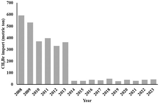 - Fields, P.G.; White, N.D.G. Alternatives to methyl bromide treatments for stored-product and quarantine insects. Annu. Rev. Entomol. 2002, 47, 331–359. [Google Scholar] [CrossRef] [PubMed]