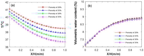Influence of porosity on temperature–moisture field in HCCTs: (a) temperature; (b) moisture.