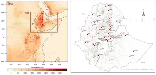 Due to the scarcity of region-specific WRF sensitivity studies for Ethiopia, the selection of options tested for each physics parameterization was primarily guided by their widespread adoption across diverse meteorological settings, which serves as a proxy for their effectiveness and adaptability. Consequently, we referred to the ‘WRF Physics Use Survey’ to identify the top two or three most favored schemes based on their frequency of use by the global WRF community [56]. Furthermore, a review of the limited regional climate modeling studies within the region (e.g., [8,9,28,57,58,59]) revealed that the schemes tested in this sensitivity study are among the most commonly utilized options. Although some of these studies did not directly compare scheme performances, they provided valuable insights into their practical applications.