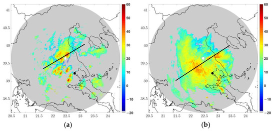 For the needs of the current study, data from the Hellenic National Meteorological Service (HNMS) weather radar network were used, which provides near real-time spatio-temporal monitoring of the atmosphere. Specifically, data from Larissa S-band (2.7 GHz) Doppler weather radar located at latitude 39.6446° N and longitude 22.4603° E were retrieved. The radars provide twelve elevation Plan Position Indicator (PPI) scans, with a horizontal resolution of 400 m. These remote sensing observations were crucial for identifying regions of intense convection and therefore, potential icing conditions.