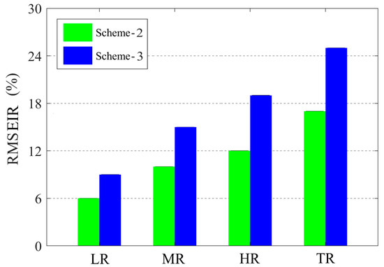RMSE improvement rate of different rainfall levels in Schemes 2 and 3.