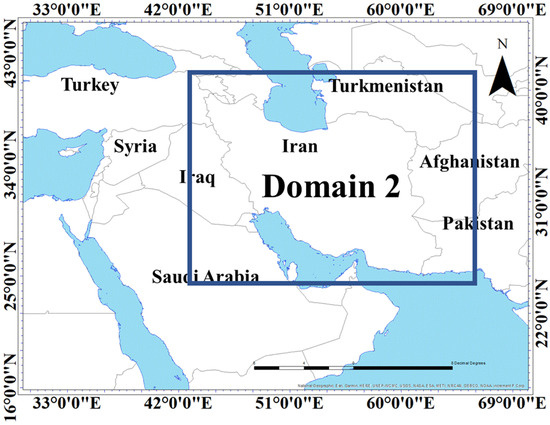To optimize the model’s performance for the complex terrain of Iran, the WRF model was implemented with two-way nested domains. The first, larger domain covered the Middle East region at a horizontal resolution of 15 km, while the second, higher-resolution domain focused on Iran at 5 km (Figure 2). This nesting approach allowed the model to better resolve the intricate topographic features of the study area. Additionally, the model was configured with 39 vertical levels, extending from the surface up to the 100 hPa pressure level. The first six vertical levels were positioned at approximately 12, 35, 65, 100, 140, and 200 m above the ground, ensuring a detailed representation of the atmospheric boundary layer.