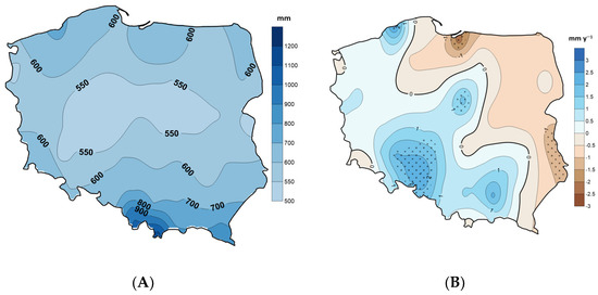 - Łupikasza, E.; Małarzewski, Ł. Precipitation Change. In Climate Change in Poland: Past, Present, Future; Falarz, M., Ed.; Springer Climate: Cham, Switzerland, 2021; pp. 349–373. [Google Scholar]