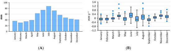 | Month/Season | Number of Days, Days dec−1 | Number of Station Days, Days dec−1 | Intensity, mm deg dec−1 |