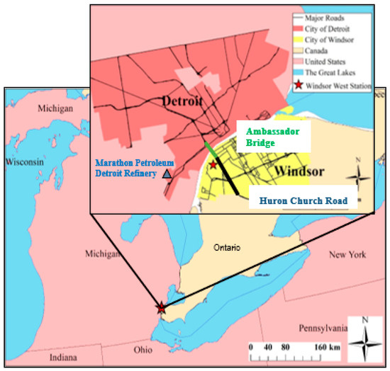 - Wheeler, A.J.; Smith-Doiron, M.; Xu, X.; Gilbert, N.L.; Brook, J.R. Intra-Urban Variability of Air Pollution in Windsor, Ontario—Measurement and Modeling for Human Exposure Assessment. Environ. Res. 2008, 106, 7–16. [Google Scholar] [CrossRef] [PubMed]