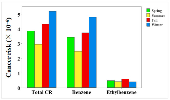 | Harbin, China | 4.73 × 10−6 | 6.39 ×10−7 | 5.37 × 10−6 | Benzene and ethylbenzene | [13] |