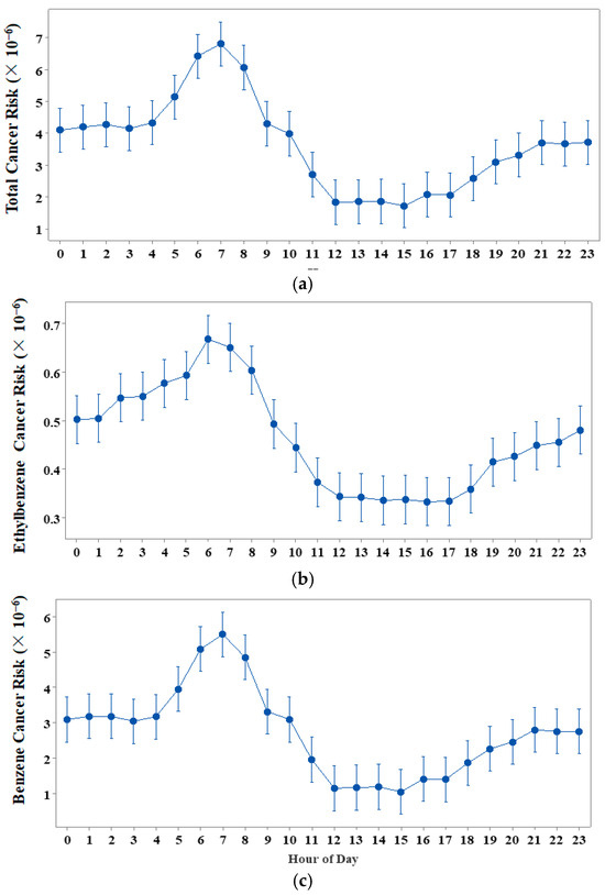 | Burnaby, BC, Canada | 2.8 × 10−5 | 1.4 × 10−6 | 1.1 × 10−4 | 11 VOCs | [20] |