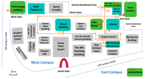 2.1. Campus and Its Typical Functional Zone Overview
