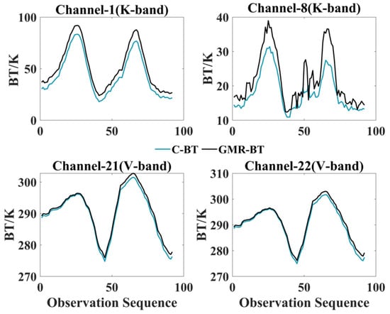 A comparison of C-BT and GMR-BT in the K-band and V-band under cloudy conditions.