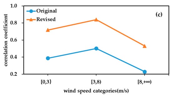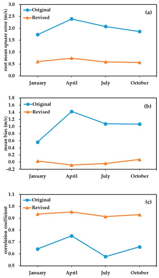 3.2.1. Wind Speed Correction Effects for Representative Months of Each Season