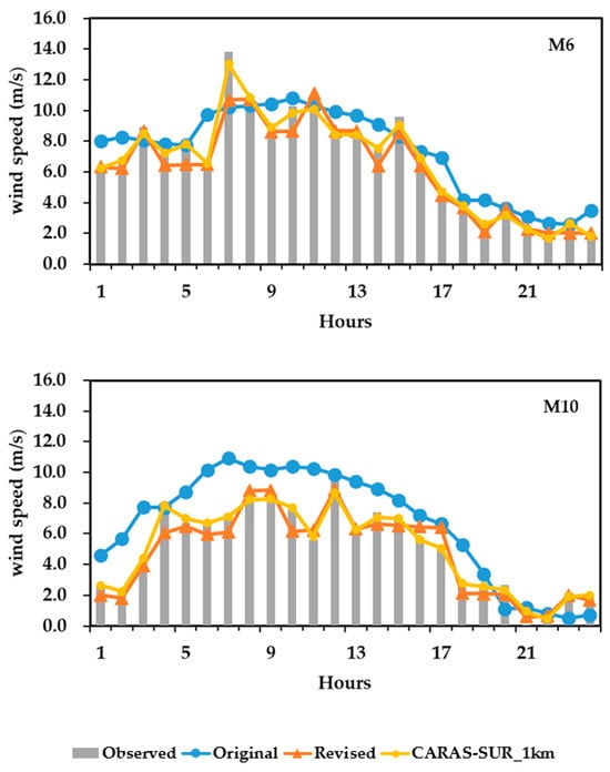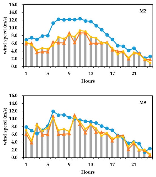 The time series plot of wind speeds at representative meteorological stations on 26 April 2022. M2—Zhangbei, M9—Qiaodong, M6—Xuanhua, M10—Huailai.