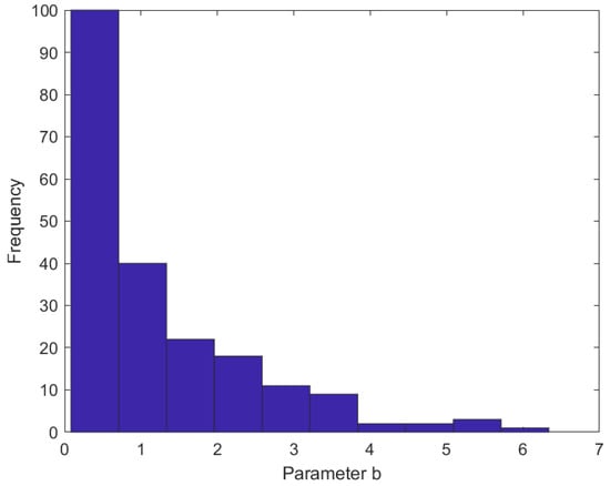 Figure 2 presents the histogram of parameter b for hydrogen from all the experimental data. It is obvious that most of the values are between 0 and 1. Also, the maximum value of parameter b is equal to 6, and this is the most important value for security reasons.